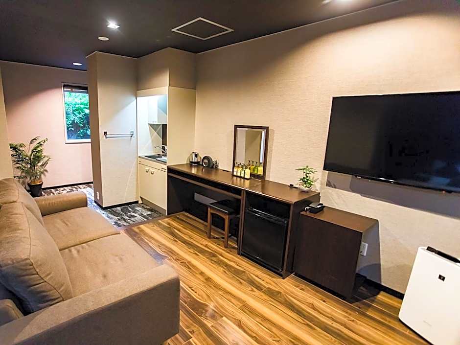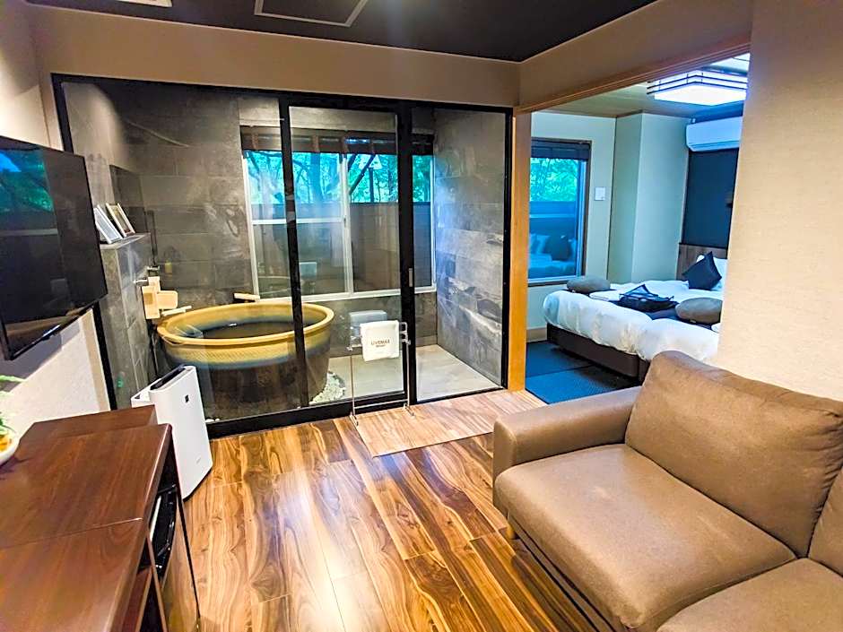 Guests will have a special experience as the family room offers a private open-air bath. Providing free toiletries and bathrobes, this family room includes a shared bathroom with a bath, a shower and a bidet. The family room provides air conditioning, tatami, a wardrobe, an electric kettle and a flat-screen TV. The unit offers 2 beds.