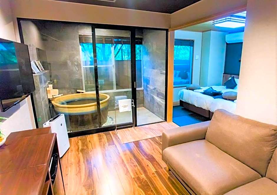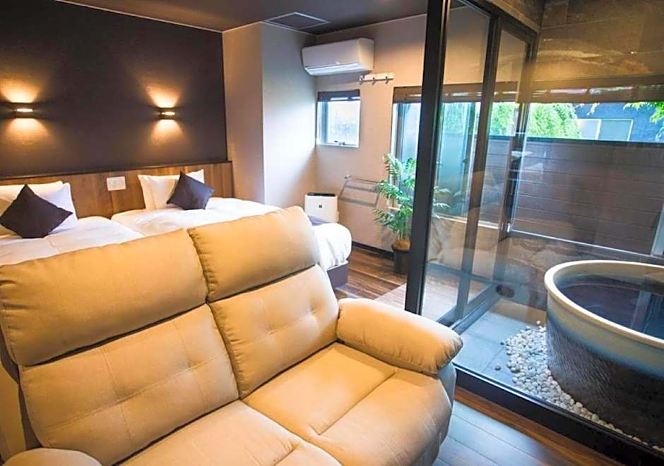 Guests will have a special experience as the twin room offers a private open-air bath. Providing free toiletries and bathrobes, this twin room includes a private bathroom with a bath, a shower and a bidet. The twin room provides air conditioning, a wardrobe, an electric kettle, a sofa and a flat-screen TV. The unit offers 2 beds.