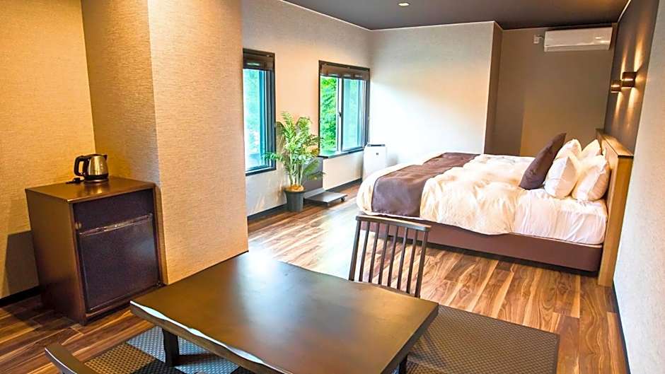 Guests will have a special experience as the family room offers a private open-air bath. The family room includes a private bathroom, well-fitted with a bath, a shower, a bidet, a hairdryer and slippers. The family room provides air conditioning, tatami, a tea and coffee maker, a wardrobe, as well as a flat-screen TV. The unit offers 2 beds and 2 futons.